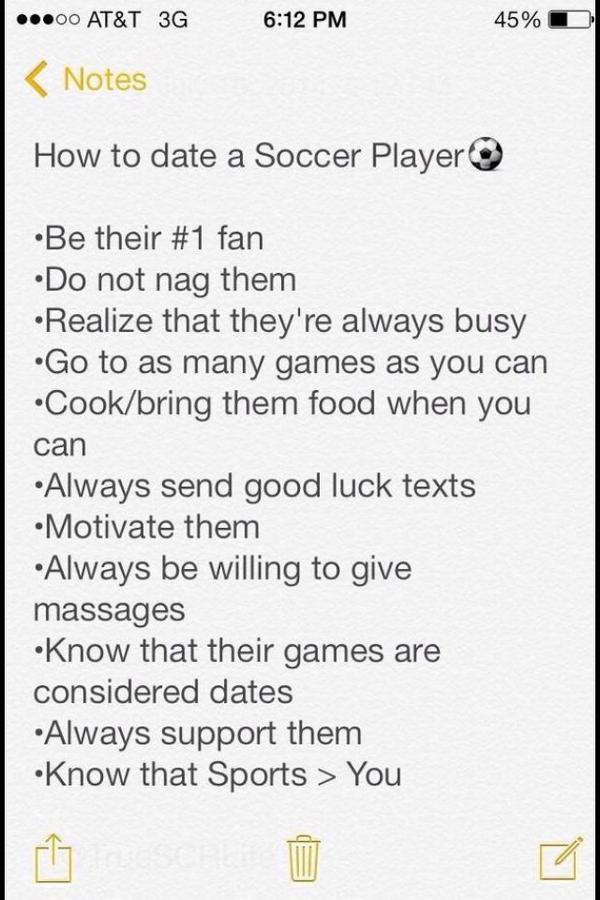 How to date a Soccer Player. Very true but the last one should be